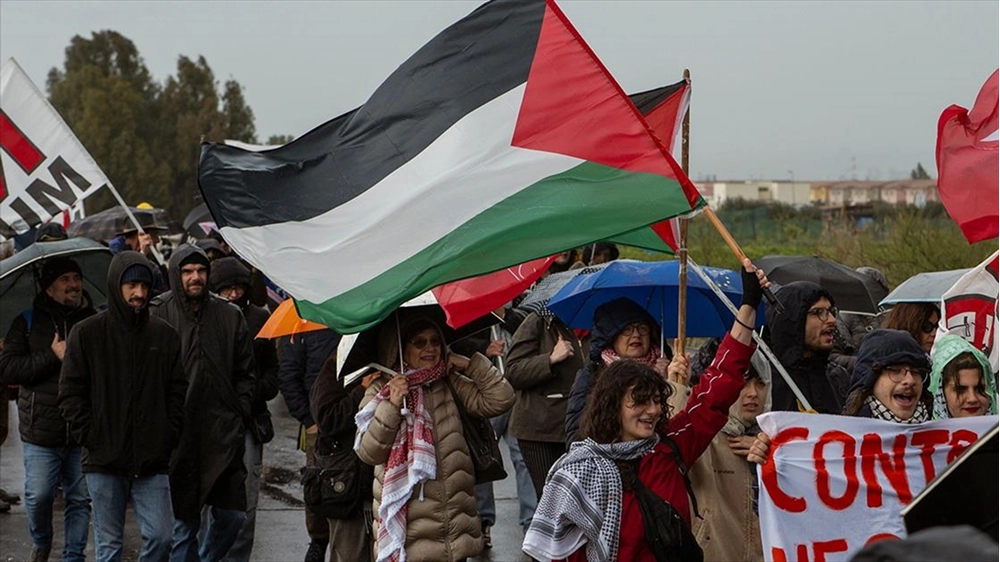 ROMA (AA) - Sicilya Adası'nda ABD üssü olmasına karşı çıkan, aralarında sol partiler, sivil toplum kuruluşları ve Filistin destekçilerinin bulunduğu birkaç yüz kişiden oluşan grup, Sigonella Üssü’nün girişinde yağışlı havaya rağmen gösteri düzenledi.