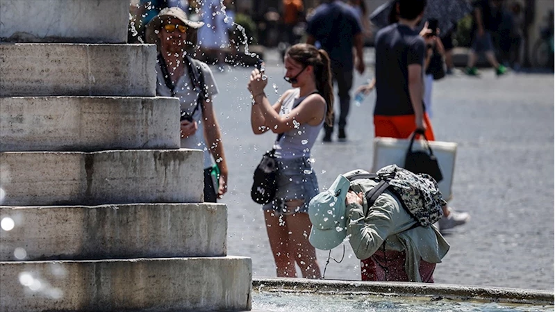 Yüksek hava sıcaklıkları dolayısıyla başkent Roma'da da serinlemek ve su almak isteyenler çeşmeler önünde uzun kuyruklar oluşturdu.