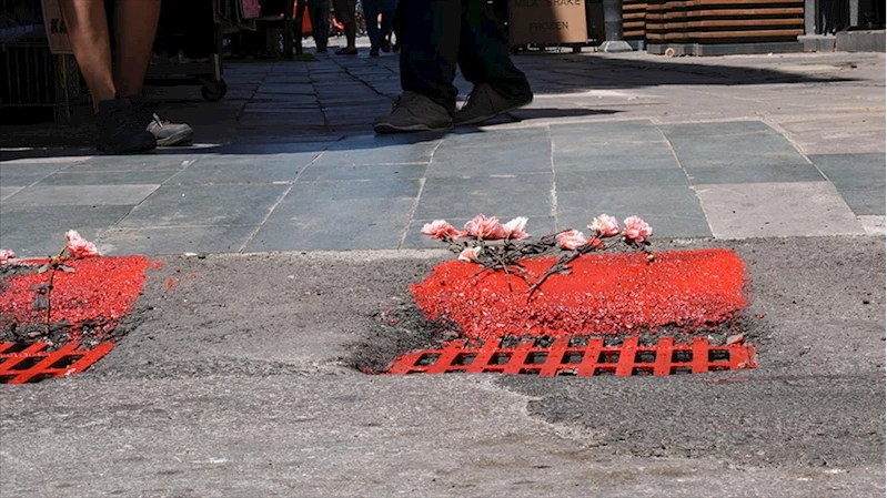 Öte yandan, sivil toplum kuruluşları da olayın yaşandığı sokakta eylem yaptı. Enver Dündar Başer Sokak'ta toplanan bir grup, sokaktaki mazgalları kırmızıya boyadı.