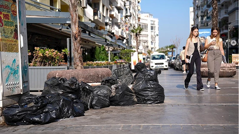 İzmir'de belediye çalışanlarının iş bırakması sonrası kent merkezinde çöp yığınları oluştu
