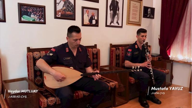 KIRŞEHIR (AA) - İl Jandarma Komutanlığında görevli Jandarma Astsubay Kıdemli Çavuş Haydar Mutluay ve Jandarma Uzman Çavuş Mustafa Yavuz, kent merkezindeki Neşet Ertaş Gönül Sultanları Kültür Evi'ndeki bozlak ustasının android heykeli yanında bağlama ve klarnet çalarak "Neredesin Sen" türküsünü söyledi.