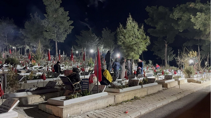 KAHRAMANMARAŞ (AA) - Gecenin karanlığına rağmen Kahramanmaraş Kapıçam Şehir Mezarlığı'na giden vatandaşlar yakınlarının kabirlerini sulayıp çiçek bıraktı.