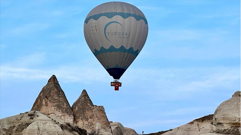Türk bayrağı taşıyan balonlar Kılıçlar ve Güllüdere vadilerinde yaklaşık bir saat boyunca uçuş gerçekleştirdi.