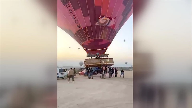 Kapadokya'da sıcak hava balonunun sepetinin otomobile çarptığı anlar kamerada