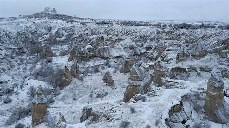 Kapadokya'nın manzarasına kar güzelliği eklendi