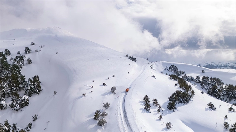 Ekiplerin yol açma ve kar küreme çalışmaları dronla görüntülendi.