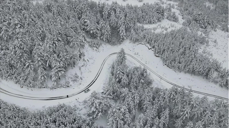 Karla kaplanan Kastamonu ormanları dron ile görüntülendi