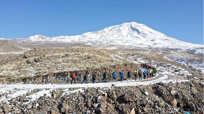 Kışın çetin geçmesi nedeniyle tırmanışların azaldığı Ağrı Dağı'nda, Türkiye Dağcılık Federasyonunca kış faaliyetleri için düzenlenen program kapsamında yurdun birçok bölgesinden dağcılar, Doğubayazıt ilçesine geldi.