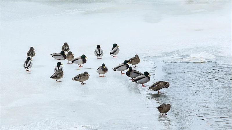 Sulak alanların buzla kaplanması nedeniyle, göç etmeyerek kentte kalan yaban kuşları ve ördekler, yiyecek bulmakta zorluk çekiyor.
