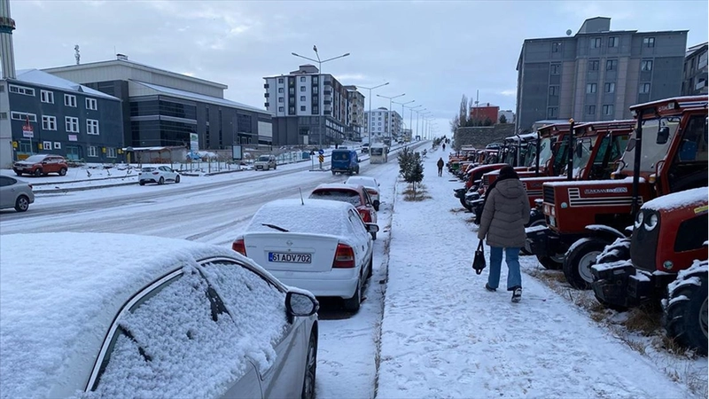 Aralıklarla devam eden yağış nedeniyle yollar ve park halindeki araçlar karla kaplandı.