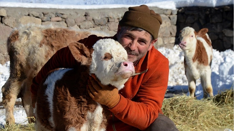 Yağbasan köyünde büyükbaş hayvan besiciliği yapan Göktürk Öztürk, AA muhabirine, aşırı soğuklarda hayvanları olumsuzluklara karşı korumaya çalıştıklarını söyledi.