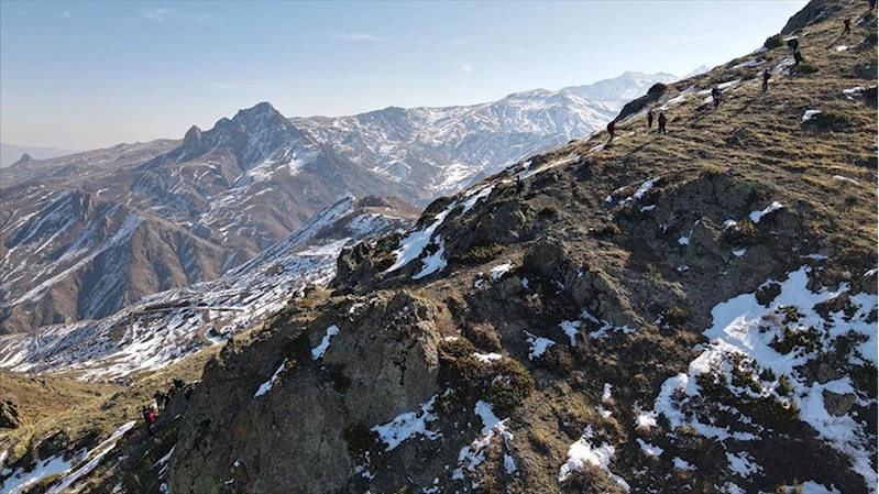 Rehberler eşliğinde dağlara çıkan doğa tutkunları 15 kilometrelik parkurda saatlerce yürüyüp zirve tırmanışları yapıyor.