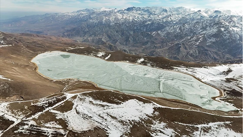 Yaz aylarında doğa tutkunlarını ağırlayan gölün yüzeyi, kış mevsiminde dondurucu soğukların etkisiyle buzla kaplandı.