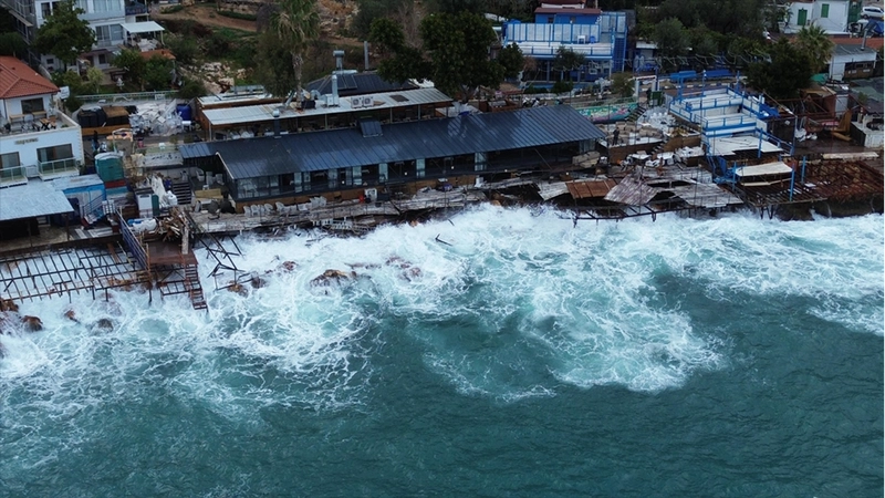 Kaş'ta dalgalar tekne ve işletmelere zarar verdi