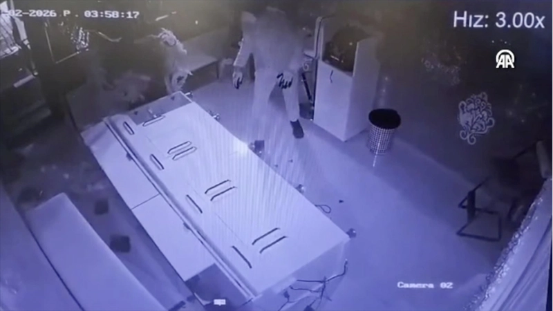 Olaya ait ulaşılan güvenlik kamerası kayıtlarında, zanlının forkliftle kuyumcunun kepenk ve camlarını kırarak içeri girdiği, altınları aldıktan sonra eşekle olay yerinden kaçtığı görülüyor.