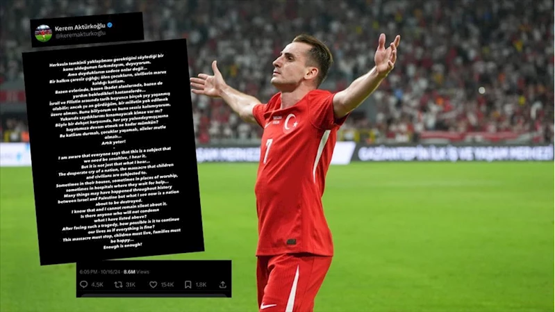- Milli yıldız Kerem Aktürkoğlu, İsrail'in Filistin'deki katliamına yine tepki gösterdi