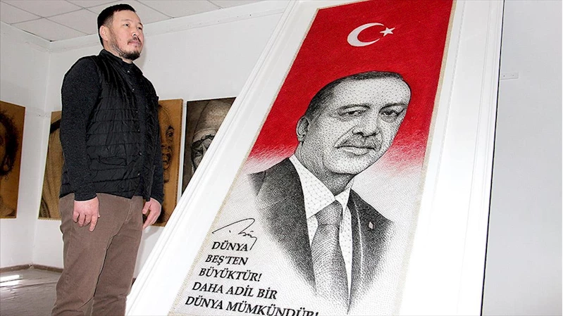 Kırgız ressam, 70 bin çivi ve tel kullanarak Cumhurbaşkanı Erdoğan'ın portresini yaptı