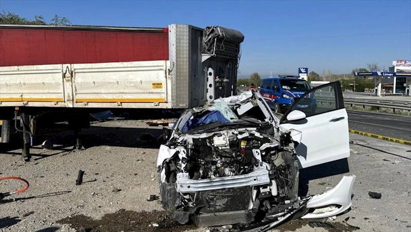 KIRIKKALE (AA) - Ş.Ç.O. (31) idaresindeki 34 FMG 570 plakalı otomobil, Kırıkkale-Samsun kara yolu Yukarımahmutlar köyü girişinde önce yol kenarında bekleyen yayaya, ardından park halindeki tır dorsesine çarptı.
