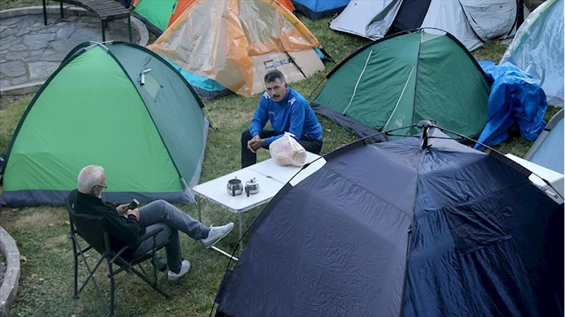 Kırkpınar'a gelen güreşseverlerin bazıları çadırda konaklıyor