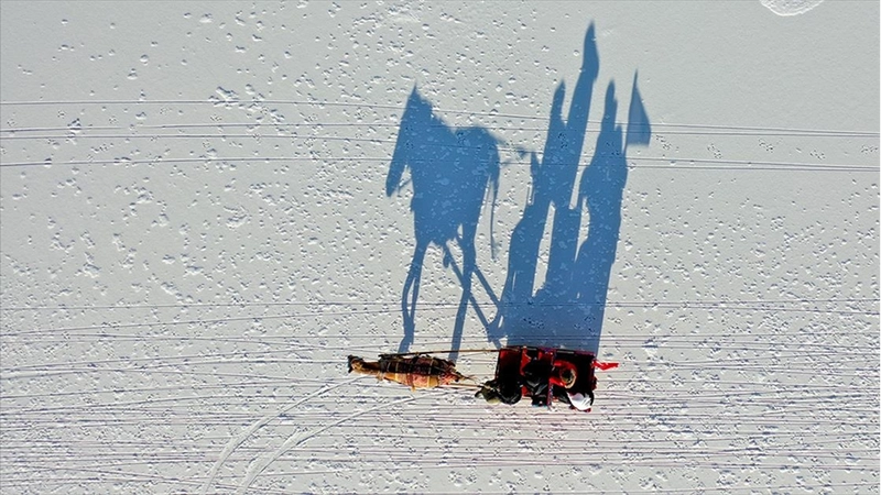 Çıldır Gölü'nde atlı kızakçılık yapan Davut Taşdemir, AA muhabirine, Doğu Anadolu Bölgesi'nin en büyük ikinci gölü Çıldır'da atlı kızak turlarının başladığını söyledi.