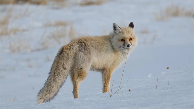 Kar ve soğuk hava nedeniyle yaban hayatının olumsuz etkilendiği bölgede kızıl tilkilerin, dakikalarca sesleri dinleyerek avını yakalamaya çalışıyor.