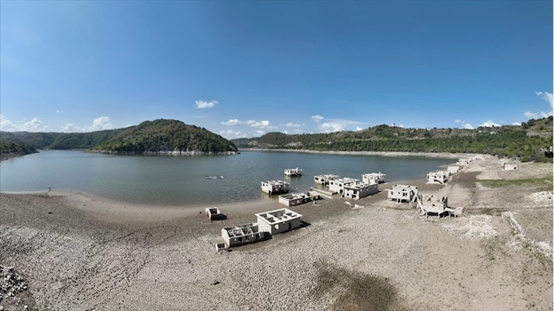 Sudaki azalmayla birlikte baraj havzasındaki yapılardan bazıları gün yüzüne çıktı.