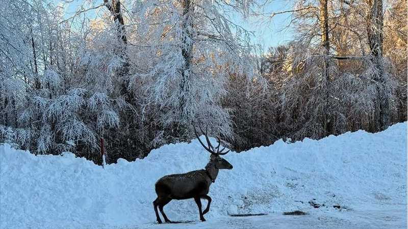 Karla kaplı yaylada gezen kızıl geyik, bölgedeki belediye çalışanı tarafından cep telefonuyla görüntülendi.