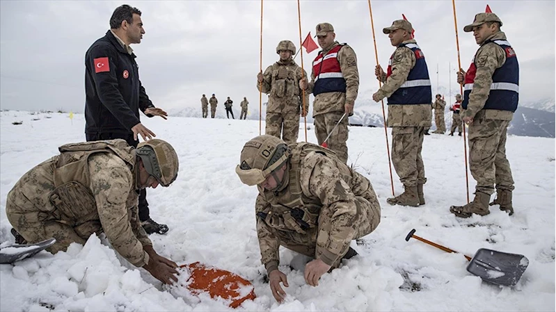 Teorik dersler sonrasında karlı ve soğuk araziye çıkartılan komandolar, eğitmenler gözetiminde sinyal telsizi, kürek ve sonda gibi aletlerin kullanımını öğreniyor.