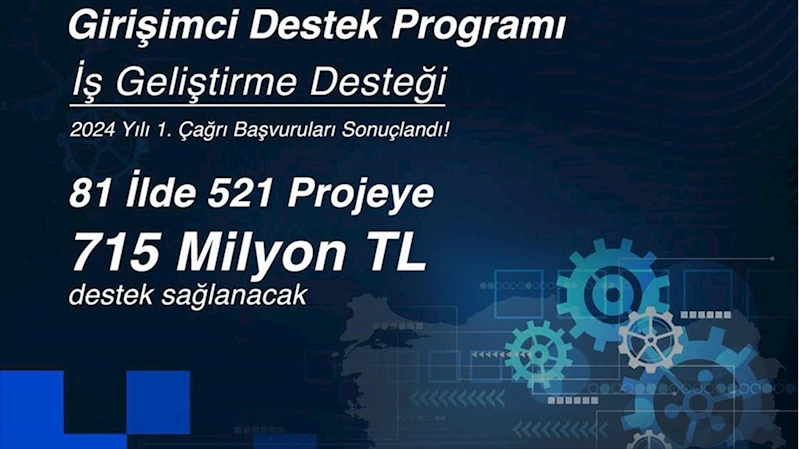 Kalkınmanın dinamosu KOBİ'leri desteklemeye devam ettiklerini belirten Kacır, "KOSGEB İş Geliştirme Desteği 2024 yılı ilk çağrı başvuruları sonuçlandı. 521 projeye 715 milyon lira destek sağlayacağız. 81 ilimizde KOSGEB sahada ve girişimcilerimizin daima yanında." ifadesini kullandı.