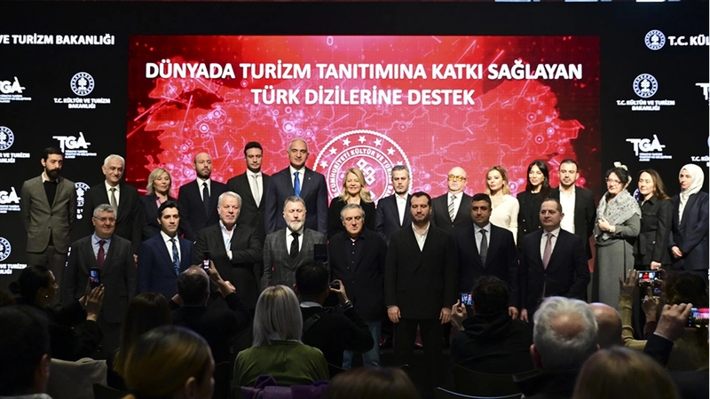 "Dünyaca tanınan oyuncularımızı diziler üzerinden birer turizm elçisine dönüştüreceğiz"Verilecek desteklerle dizi ve film çekimlerinin turizm stratejisinde öne çıkan destinasyonlarda yapılmasını teşvik edeceklerini söyleyen Ersoy, şöyle devam etti: