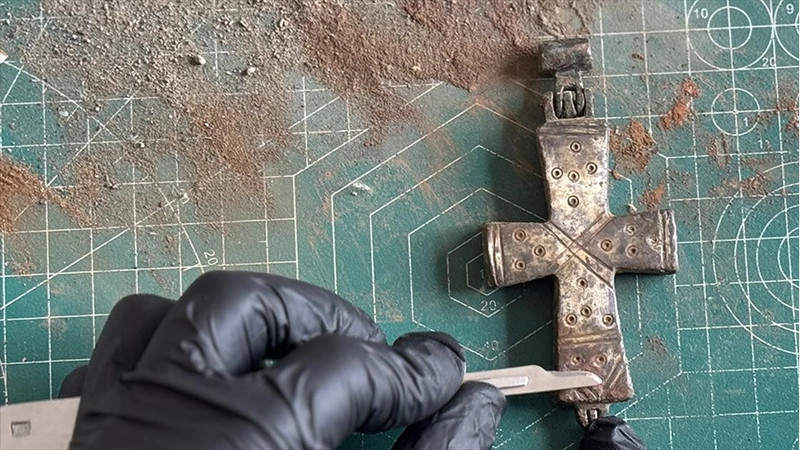 Bronzdan haç, açılmayacak şekilde mühürlenmişKazı Başkanı NEÜ Öğretim Üyesi Doç. Dr. İlker Mete Mimiroğlu, AA muhabirine, kazı ekibinde görevli restoratörle eserlerde temizlik çalışması yürüttüklerini söyledi.