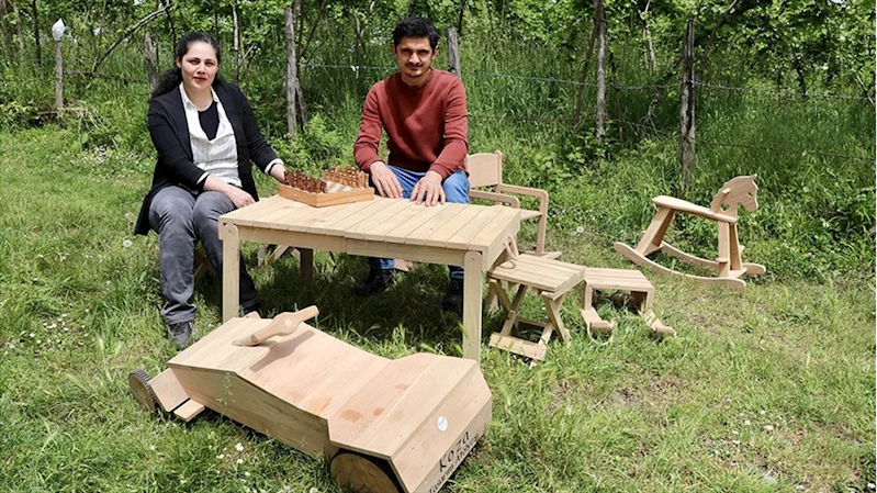 İki çocuk sahibi çift, ahşaptan oyuncağın yanı sıra masa, sandalye ve dekoratif eşya üreterek yurt içi ve yurt dışına satış yapıyor.