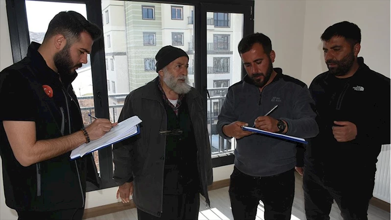 Konutların anahtarlarını alan hak sahipleri, AFAD personelinin gözetiminde evlerini gezdi.