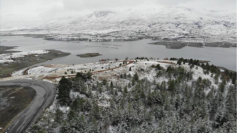 Malatya'da karla kaplanan Sürgü Barajı dronla görüntülendi