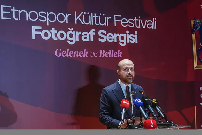 Törende konuşan Bilal Erdoğan, serginin "Gelenek ve Bellek" başlığında düzenlendiği hatırlatarak, "Etnospor Kültür Festivalleri 7 defa İstanbul'da kültürseverlerle buluştu. Dünyanın dört bir yanından gelen gelenekleri, kadim kültürleri, oyunları, geleneksel sporları, aynı mekanda bir araya getirdi. Bu yönüyle dünyanın önemli kültürel ve spor etkinliklerinden bir tanesi haline geldi. Dünyanın ve Anadolu'nun bu kadar çeşitli kültürel öğesini dört gün içerisinde bu kadar az eforla görmek sadece İstanbul'da Etnospor Kültür Festivali'nde mümkün olabiliyor. Bugün modern hayatın hızı içerisinde kaybolma riski taşıyan geleneksel sporlarımızı ve oyunlarımızı yeniden ihya etmek, onları yalnızca birer nostaljik öğe olarak değil, yaşayan birer değer olarak geleceğe taşımak için adımlar atıyoruz. Etnospor Kültür Festivali'nde köklerimizle bağ kurduğumuz, insanın merkezi alan medeniyet tasavvurunun izlerini sürüyoruz. Bu festivaller kapsamında düzenlenen fotoğraf yarışmamız yaşanan anın ötesine geçen bir tanıklık sunuyor. Bugün bu sergide gördüğümüz her bir kare ortak belleğimize düşürülmüş bir not, geleceğe bırakılmış nitelikli bir arşiv niteliği taşıyor." ifadelerini kullandı.