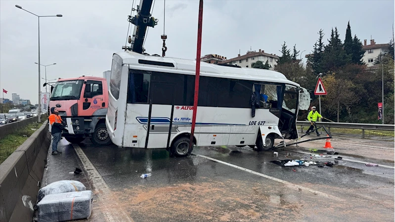 İSTANBUL (AA) - D-100 kara yolunda Ankara yönüne giden Şenol V. (50) idaresindeki 34 LOE 627 plakalı midibüs, Maltepe mevkisinde yol kenarında bulunan beton bariyere çarparak devrildi.