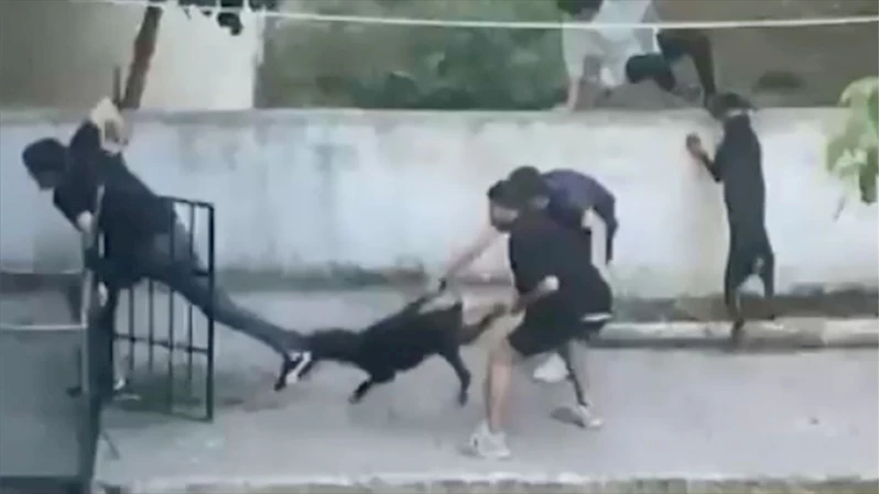 Köpeğin saldırdığı Alkurt'un çevredeki vatandaşlarca kurtarıldığı anlar cep telefonu kamerasınca kaydedildi.