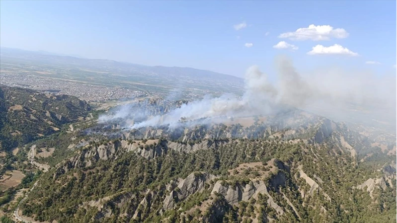 Manisa'nın Salihli ilçesindeki orman yangınına müdahale sürüyor