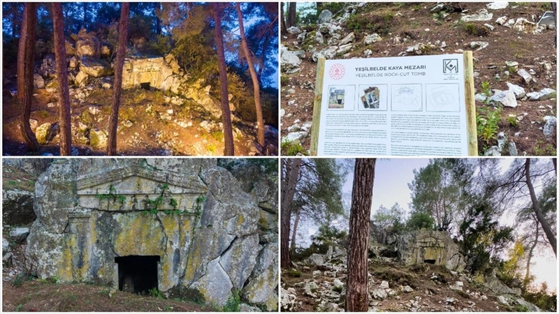 Yeşilbelde Kaya MezarıKaria ve Lykia'da yaygın görülen tapınak cepheli kaya mezar mimarisinin Marmaris'teki tek örneği olan yapı, İyon düzeni örneklerinden farklı olarak Dor düzenindeki mimarisiyle dikkati çekiyor. M.Ö. 4-5. yüzyıla tarihlendiği değerlendirilen tek odalı anıt mezarda, zeminin zayıf yapısı ve 1957 Fethiye depremine ilişkin bulgular nedeniyle, "ziyarete açma" odaklı planlanan proje revize edilerek öncelik korumaya verildi.