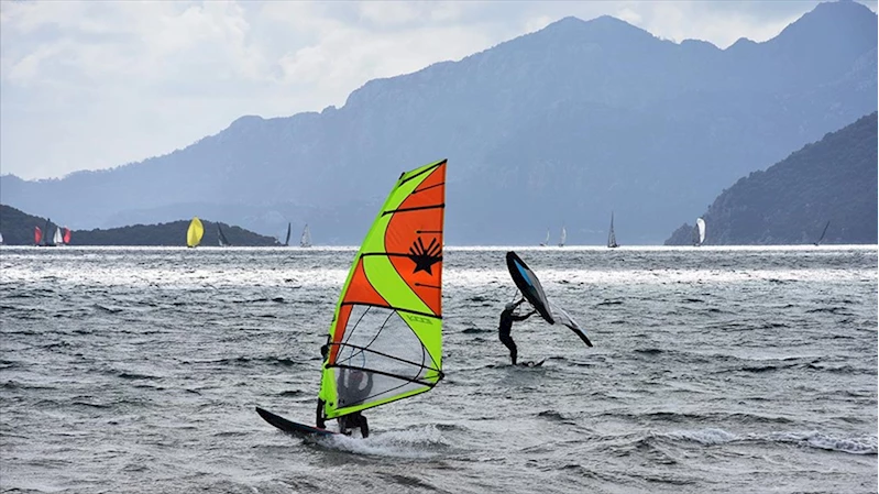 Marmaris'te adrenalin tutkunları keşişlemede sörf yaptı