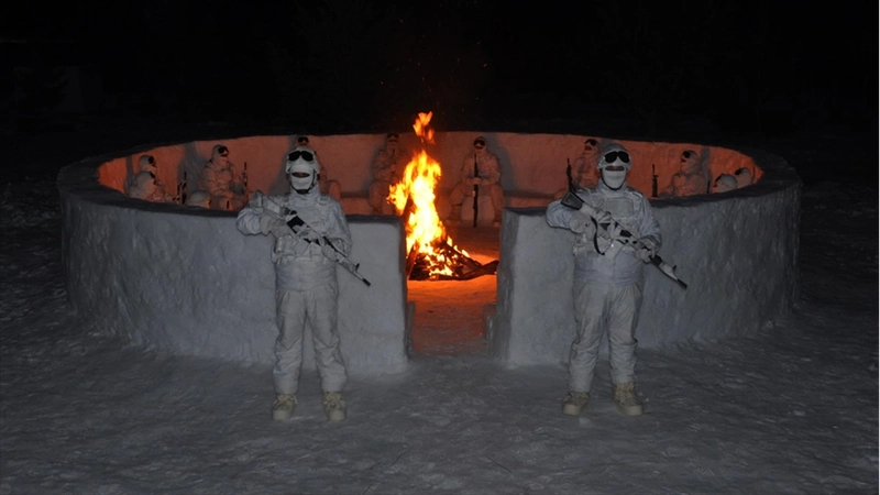 ANKARA (AA) - Bakanlığın NSosyal hesabından yapılan paylaşımda, "En zorlu şartlarda bile eğitime devam. Kara Kuvvetleri Komutanlığımızdan ve Deniz Kuvvetleri Komutanlığımızdan personelin katılımıyla Kars'ta konuşlu Derin Kar ve Şiddetli Soğuklarda Muharebe Eğitim Merkezi Komutanlığımızda '18'inci Dönem Barınma ve Çığ Kursu' icra edildi." ifadeleri kullanıldı.