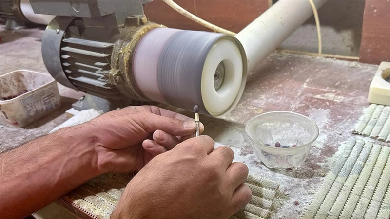 Ürünlerinin birçok fuarda tanıtıldığını anlatan Ceyhan, yıllık 800 kilogram ham maddeden sıkma kehribar tespih, 4-5 ton oniks mermerden ise çeşitli ürünler üretildiğini söyledi.
