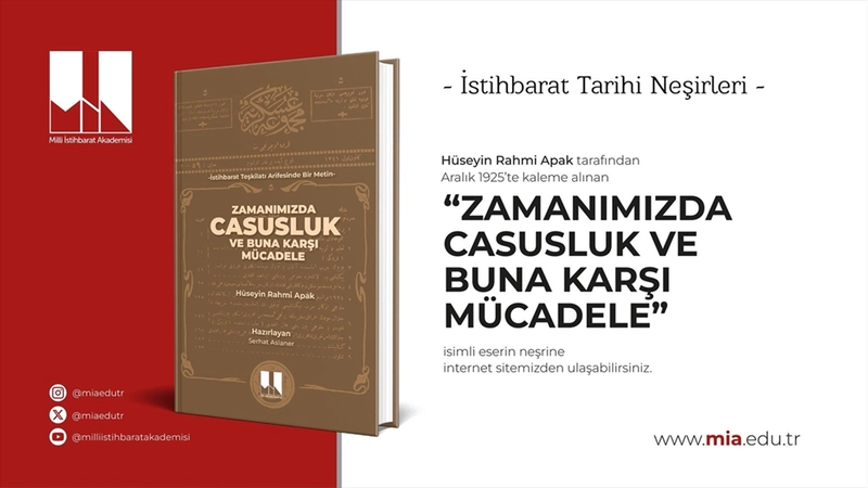 Hüseyin Rahmi Apak tarafından 1925'te kaleme alınan, "Zamanımızda Casusluk ve Buna Karşı Mücadele" başlıklı eser, 100 yıl sonra MİA Öğretim Üyesi Dr. Serhat Aslaner tarafından yayına hazırlandı.