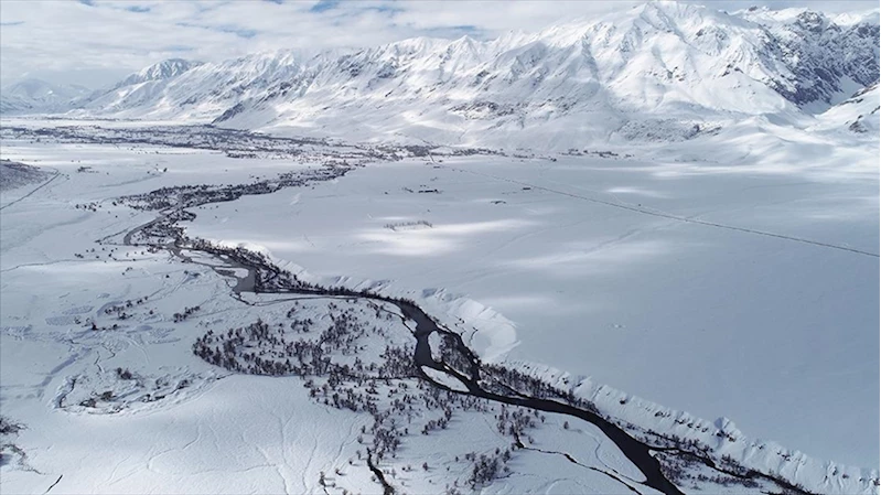 Munzur Çayı'nın menderesler oluşturarak geçtiği milli parktaki kış güzelliği, dronla görüntülendi.