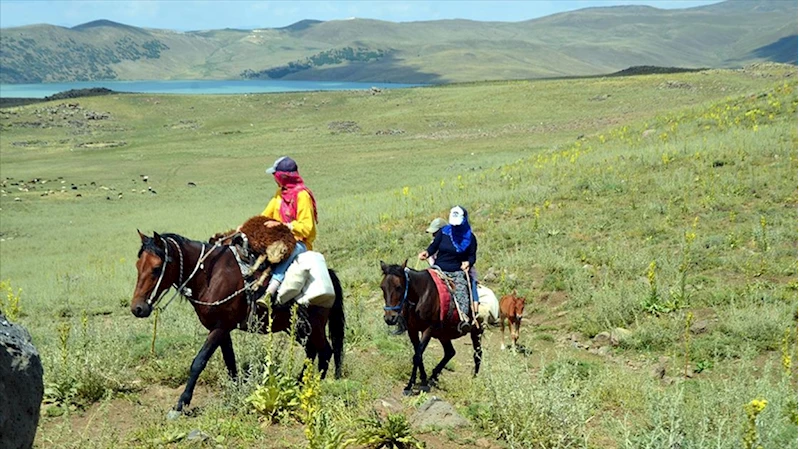 Muş'ta berivanlar küçükbaş hayvanları sağmak için her gün atlarla yaylaya çıkıyor