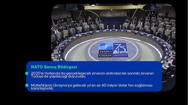 75. NATO Zirvesine ev sahipliği için ABD’ye teşekkür edilirken, 2025'te Hollanda'da gerçekleşecek zirvenin ardından bir sonraki zirvenin Türkiye'de yapılacağı duyuruldu.