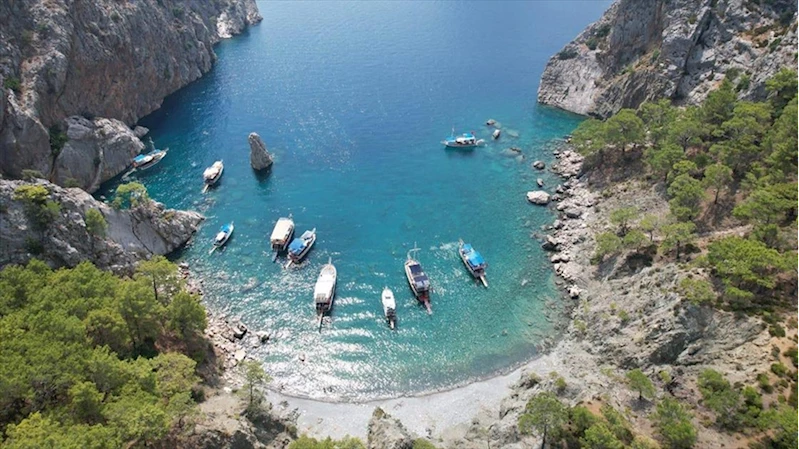 "Aşıklar Mağarası ilgi odağı"Tur teknesi sahibi Mikail Yörükoğlu, AA muhabirine, Çıralı plajından kalkan teknelerine Olimpos'tan da yolcu almalarının ardından koylara gittiklerini söyledi.