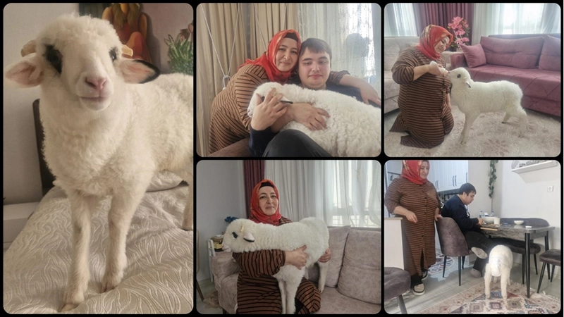 Otizmli oğlunun isteği üzerine aldıkları kuzuya evde bebek gibi bakıyorlar