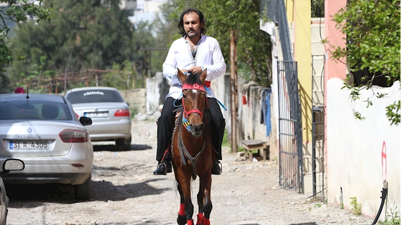 HATAY/DENIZLI (AA) - İskenderun'da vinç operatörlüğü yapan Abdullah Cıla (39), "Yörük Kızı" adlı atının üzerinde gittiği Denizciler Gübretaş Ortaokulu'nda oyunu kullandı.