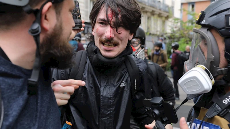 Paris'te 1 Mayıs gösterisinde polis eylemcilere copla müdahale etti